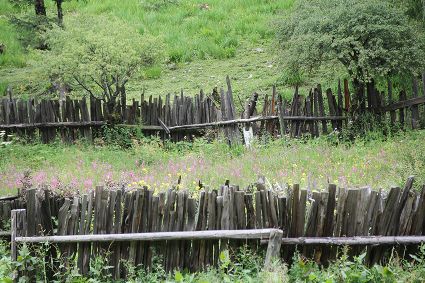 隨著海拔高度的升高與緯度的增加,一路上的植被類型也在不斷發(fā)生著變化。穿越深闊的暗針葉林,六匹馬起起落落的腳力踩出了一個馬幫的回音,所有的植物在各自的生命活動中散發(fā)出了清新怡人的芬多精,吉美為此小聲哼唱起了愉悅的歌兒,細(xì)聽卻又像是兩只云雀在不遠(yuǎn)處鳴囀。再往上走,周遭的林木又轉(zhuǎn)換成了密致的高山杜鵑林,無數(shù)修長的木流蘇垂掛在樹枝上,像哈達(dá)。一路沉默的南杰轉(zhuǎn)頭來開始與我說話“六月間,這里的每一棵樹都開滿了粉白的花朵,一樹樹的煞是壯觀好看,我一個人經(jīng)過,總能聽到一朵、兩朵花鈍落的聲音。最初,我以為是馬雞飛落了,輕聲走入林中打探,身后又會落下一朵、兩朵花,那聲音厚重沉實(shí),林中又過于安靜,我就慌忙走出了林子......”南杰說話聲音秀氣,我聽得時斷時續(xù),過風(fēng)吹送著南杰話語中杜鵑花的香氣。前路逐漸敞亮起來的時候,路邊的杜鵑樹開始變得稀稀落落了,只見路旁堆壘著高高低低的新鮮柴垛。再往上就沒有樹木了,只有矮腳盤香和淺草,路邊的山包上緊貼著密密麻麻的貌似多肉植物的草葉,從草心抽出來一枝枝薔薇紅的花柱在風(fēng)中頻頻點(diǎn)頭。雍貝在前方的馬匹上頭低得越來越沉,以為他瞌睡,我喊了聲貝,他回頭看我,面色灰白嘴唇有些發(fā)紫。南杰回望我們后一躍下馬,從路邊的淺草中折斷幾根盤香枝別在雍貝的耳際,說是可以抵御高反。剩余的兩根遞給我,細(xì)小的枝葉上積著一層薄薄地灰色粉塵,深嗅有松脂的清香氣味,安人心神。