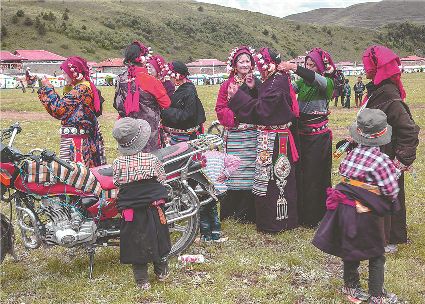 在這片熱土上,陽光已經(jīng)從樹梢泄下,歌聲在密林里回蕩。木雅人的坦率與真誠,不存一絲瑕疵。草地就是舞臺,用心踏步的動作,把鮮艷與活躍傳進(jìn)心靈。