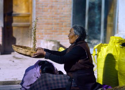 我想,擁有了清新質樸的鄉(xiāng)野日子,就可以靜下心來。而事實上還是無法安下心來,一面想著山林的神秘,一面想著城市的熱鬧。寂寞無聲地穿過巷道,那個向陰的小二樓一如既往地昏暗。拉開麻布的窗簾,大多時候我會看見走在巷道里的老老少少、男男女女,他們背著柴禾,滿帶笑容,相互致意。他們的日子似乎充滿了無盡的樂趣,也充滿了幸福和陽光。上午十點的時候,陽光會滑過窗臺,轉瞬即逝,但陽光的確向小二樓袒露了它的無能為力。另一張桌子擺放著廚具,廚具上每天都會有新的灰塵堆積,盡管如此,它們依然發(fā)出青稞的馥郁之氣。