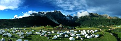 景區(qū)面積400平方公里,屬寒溫帶濕潤性高山復(fù)合帶生態(tài)系統(tǒng)。在海拔3200米到4500米的垂直范圍內(nèi),植物群落帶分明,森林茂密原始,生態(tài)完整,分布有亞高山針葉林、高山櫟林、高山灌叢草原和高山流石灘植被。