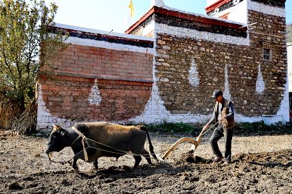 “春耕、夏耘、秋收、冬藏”是大地的“四季歌”。幾場(chǎng)春雨過后,大渡河流域氣溫逐漸回升。時(shí)下,穿行于我州 大渡河流域廣袤的山川田野間,到處是一派搶農(nóng)時(shí)的忙碌場(chǎng)景。沉寂的田野,開始熱鬧起來。農(nóng)戶們?yōu)榱艘荒甑暮檬粘?,背上背簍、帶著鋤頭、趕著耕牛,走進(jìn)阡陌縱橫的田野,鉚足“?!眲艃?,翻土、修剪、澆水、除草,田野間好不熱鬧。一幅忙春耕、勤備耕的“春耕圖”已在甘孜大地徐徐展開。
