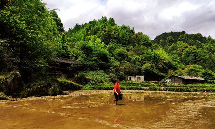 “布谷,布谷”,布谷鳥一聲呼喚,田野沸騰起來了。有人在一丘丘不規(guī)則的水田,撒播稻種;有人在屋后的坡地搭好竹架,栽上一線線瓜秧。