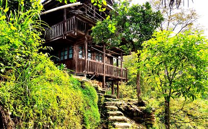 一眼的山,一眼的綠,一眼的云霧,一眼的煙雨,從吊腳樓木格花窗亮麗妖嬈走出來。經過吊腳樓的旅人,不經意就會站成一棵長腳的樹。