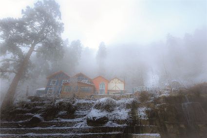 在一片片雪花的飄落中,冬天來了,它帶著風(fēng)、帶著雪,帶著讓人不禁要裹緊衣服的寒冷來了,萬物在冬的腳步中慢慢俯下身子貼緊了大地。蕭索、蒼涼、千里冰封、萬里雪飄……在這些形容冬天的詞語里,我們看到的是只有黑白兩色的畫面,黑的是物,白的是雪。但是,在甘孜州,冬天卻是色彩繽紛的,不僅有白的雪,還有藍(lán)的天、綠的水、黃的樹、紅的葉……還有炊煙升起的藏寨、水汽氤氳的溫泉和日照金山的美麗景致。
