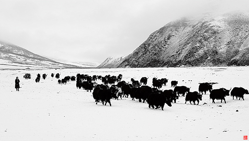 行駛在卡子拉山海拔最高處,沿途山巒起伏,冬雪飄零,銀色為世間披上一層寂靜,冬雪沒收萬物聲音。