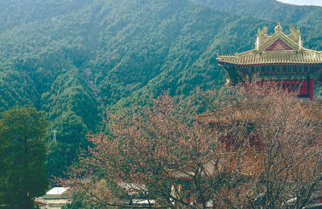 腳下的路在不停地延伸,一條或幾條通向了寨子深處,山桃花和果樹林那么茂密,只能望見藏房的瓦屋頂和彩繪木窗。