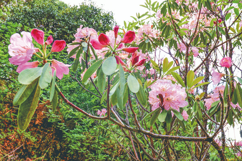 九龍縣被稱為高山杜鵑的故鄉(xiāng)。每年5月,九龍春光明媚,花潮涌動(dòng),漫山遍野各色花兒爭(zhēng)奇斗艷,然而杜鵑花在其中最為耀眼奪目。杜鵑萬紫千紅,匯集在一起,深淺濃淡,開得爛漫又無所拘束,在嫩葉的襯托下美不勝收。