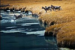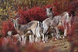 巖羊(學(xué)名:Pseudois nayaur),體型中等,形態(tài)介于野山羊與野綿羊之間。兩性具角,雄羊角粗大似牛角,但僅微向下后上方彎曲。以青草和各種灌叢枝葉為食。冬季啃食枯草。它們還常到固定的地點(diǎn)飲水,但到寒冷季節(jié)也可舔食冰雪。無(wú)固定獸徑和棲息場(chǎng)所。它們?cè)趹已虑捅谥灰幸荒_之棱,便能攀登上去。一跳可達(dá)2、3米,若從高處向下更能縱身一躍10多米而不致摔傷。冬季發(fā)情交配,次年6、7月產(chǎn)仔,每年通常只產(chǎn)1仔。主要天敵是雪豹、豺、狼,以及禿鷲和金雕等大型猛禽。中國(guó)國(guó)家二級(jí)重點(diǎn)保護(hù)野生動(dòng)物?! ?br />     巖羊分布于西藏、青海、新疆、甘肅、四川西部等地,還向東北延伸分布至黃土高原。目前,其廣大分布區(qū)的環(huán)境仍處于相對(duì)原生狀態(tài),資源儲(chǔ)量頗為可觀,是很有開(kāi)發(fā)前景的動(dòng)物種類之一。