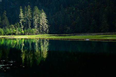 康定蓮花湖因神奇的"蓮花石"綻放湖畔而得名。沿湖兩岸崇山峻嶺,岑岑疊疊,錯(cuò)落有致。群山之間,蒼松翠柏綠沃千里;湖光之中亭臺(tái)孤島交相輝映。鷗鶴展翅,游魚成群,千帆競(jìng)發(fā),碧波瀲滟,水天一色,依然入畫。
