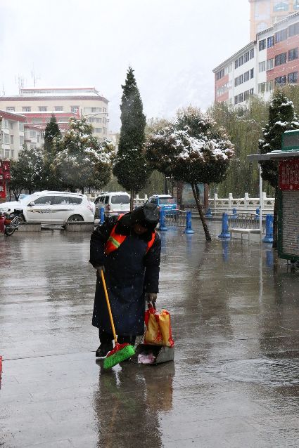 交警在忙碌,然而,我們的環(huán)衛(wèi)工也沒有歇著,無論是將軍橋、康定賓館、彩虹橋、下橋還是東關、北門,都有環(huán)衛(wèi)工人們的身影,他們不停的為這座美麗的城市清潔,讓人們感受到舒適空氣和美景。