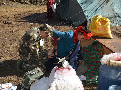 地震發(fā)生僅1小時(shí),總隊(duì)政委金德成即帶前指,從雅江翻越海拔4400余米的高爾寺山向塔公方向開(kāi)進(jìn)。與此同時(shí),應(yīng)急救援分隊(duì)分別從康定星夜兼程,疾速奔赴重災(zāi)區(qū)。21時(shí)03分,前指抵達(dá)震中塔公鎮(zhèn)奪讓一村和受災(zāi)嚴(yán)重的木雅祖慶小學(xué),深入村寨了解受災(zāi)情況,派出38名應(yīng)急救援官兵,對(duì)房屋受損嚴(yán)重的7戶災(zāi)民先期展開(kāi)救援,搶挖出被倒塌墻體壓埋的車輛2臺(tái)。并及時(shí)來(lái)到康定地震前線指揮部,請(qǐng)領(lǐng)任務(wù)。連夜為木雅祖慶小學(xué)師生搬運(yùn)棉被、搭建帳篷,幫助受災(zāi)師生順利度過(guò)震后第一個(gè)夜晚。