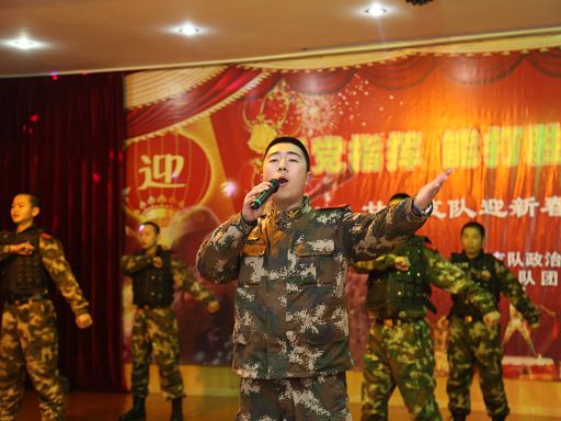 武警官兵鑼鼓喧天迎新春