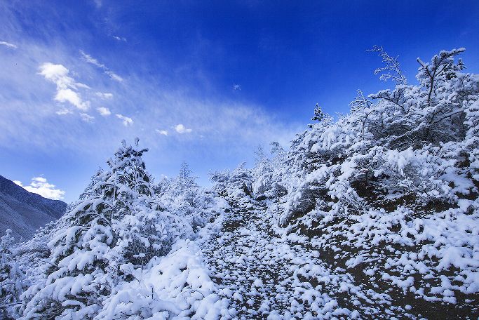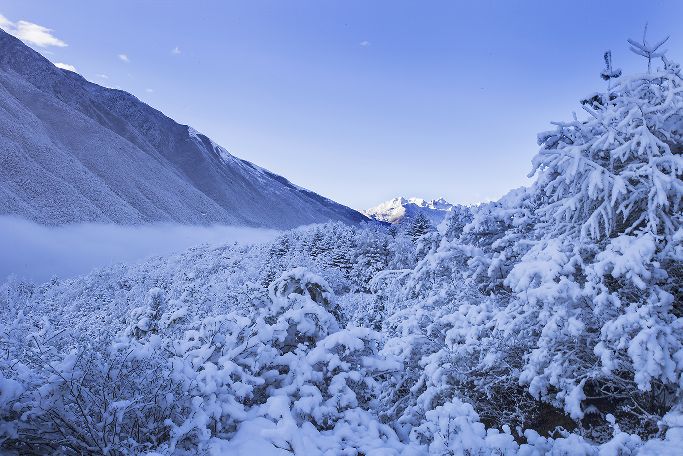 雪后康定。近日,康定迎來四月雪,雪后的山巒、樹木更顯秀美。