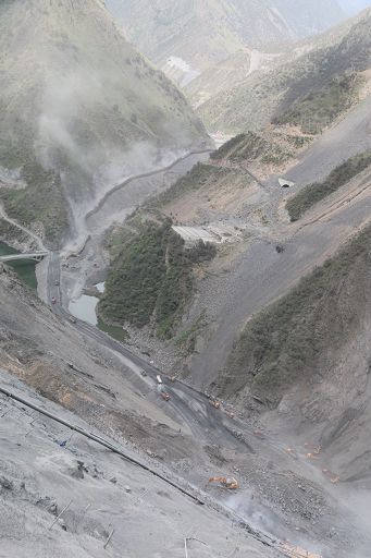 兩河口水電站采用土心墻堆石壩,最大壩高達305米,居世界同類壩型前列。樞紐建筑物由礫石土心墻堆石壩、溢洪道、泄洪洞、放空洞、發(fā)電廠房、引水及尾水建筑物等組成。“兩河口大壩采用當(dāng)?shù)夭牧辖ㄔO(shè),壩高295米,是目前中國已建或在建的第一高土石壩。”雅礱江流域水電開發(fā)有限公司相關(guān)負(fù)責(zé)人介紹說,“國家體育場‘鳥巢’體積約680萬立方米,壩體總填筑量4160萬立方米,相當(dāng)于6個‘鳥巢’的體積。”