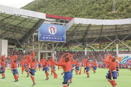8月8日上午,康定北門體育場內(nèi)歌舞升平、彩旗飄揚,第九屆康巴藝術(shù)節(jié)開幕式文藝演出在此進行最后一次帶妝彩排。本次彩排也讓我們對開幕式文藝演出充滿了期待。