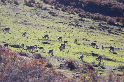 積雪融化后在卡瓦洛日腳下,匯集成兩個(gè)長(zhǎng)800米、寬300米的姊妹湖。雪山俯瞰湖泊,湖泊倒映雪山,奇花異草簇?fù)碇矗飾⒅咴傍喓透鞣N水鳥,一切都顯得那么相映成趣,是欣賞和拍攝卡瓦洛日的最佳視角之一。 (根呷扎西 攝)