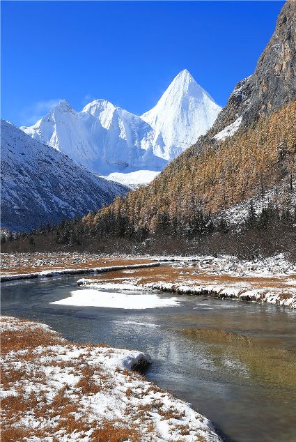 稻城亞丁給人的印象最深的應(yīng)該是一片片令人沉醉的秋景或那無處不在的青楊林,更多人不知道的是,其實稻城亞丁在冬季的美麗更為引人入勝。山巒與樹木銀裝素裹,瀑布與湖泊冰清玉潔,藍(lán)色湖面的冰層在日出日落的溫差中,變換著奇妙的花紋細(xì)細(xì)的水流發(fā)出沁人心脾的音樂。不管是冰天雪地還是人文風(fēng)情,或是原始風(fēng)光,冬季的稻城亞丁都能為您帶來最美好的視覺盛宴。