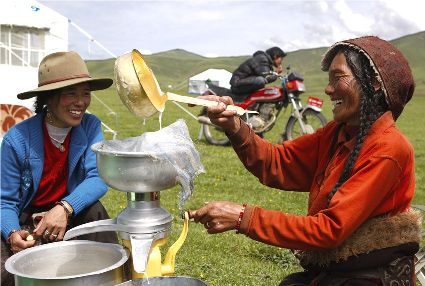 67年來,在黨中央、國務(wù)院和省委、省政府的關(guān)心關(guān)懷下,在黨的民族政策的光輝照耀下,各民族共同團(tuán)結(jié)進(jìn)步、共同繁榮發(fā)展,甘孜大地發(fā)生了翻天覆地的變化。以機(jī)場、公路為主的交通網(wǎng)絡(luò)正在形成,雅康高速公路即將通車,城市鄉(xiāng)村、藏家村寨舊貌換新顏,甘孜大地處處生機(jī)盎然,各族人民生活比蜜還甜。