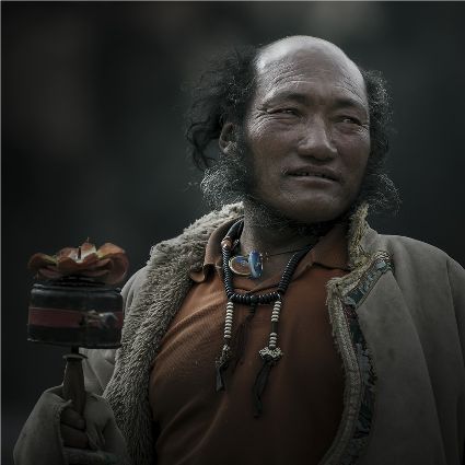 每當(dāng)我手持相機(jī)時(shí),對(duì)他們始終懷有一種敬畏,我捕捉到他們眼神里流露出虔誠(chéng)??粗?jīng)筒上“甲多”的飛轉(zhuǎn),我陶醉了,醉在那轉(zhuǎn)經(jīng)筒的旋轉(zhuǎn)舞動(dòng),醉在那轉(zhuǎn)經(jīng)筒傳誦的故事,醉在那一張張手持轉(zhuǎn)經(jīng)筒的面孔,還有,還有因祈禱音符助推而從未停止的轉(zhuǎn)經(jīng)筒……
