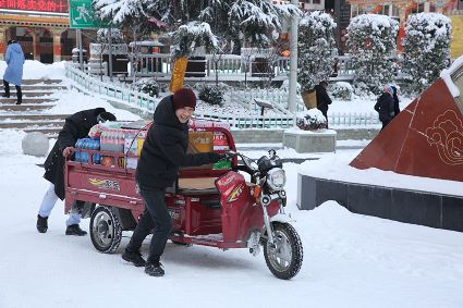 “風(fēng)雨送春歸,飛雪迎春到。已是懸崖百丈冰,猶有花枝俏?!?月4日傍晚,大片大片的雪花,從昏暗的天空中紛紛揚(yáng)揚(yáng)飄落下來。霎時(shí)間,山川、河流、城市,全都籠罩在白蒙蒙的大雪之中。黃昏的雪,下得深切切的,好象有千絲萬縷的情緒似的,又像海水一般洶涌,能夠淹沒一切,還有一絲揭開藏頭露尾般的裸露感。雪花形態(tài)萬千、晶瑩透亮,好象出征的戰(zhàn)士,披著銀色的盔甲,又像是一片片白色的戰(zhàn)帆在遠(yuǎn)航…… 落光了葉子的柳樹上,掛滿了毛茸茸、亮晶晶的銀條兒;冬夏常青的松樹和柏樹,堆滿了蓬松松、沉甸甸的雪球。那一片雪花在空中舞動(dòng)著各種姿勢(shì),或飛翔,或盤旋,或直直地快速墜落,鋪落在地上?!昂鋈缫灰勾猴L(fēng)來,千樹萬樹梨花開”——這是雪的燦爛;一場(chǎng)瑞雪,扮美了康定,年味籠罩的康定城,嫵媚妖嬈。無論是背水姑娘、有著年味兒的將軍橋,還是大紅燈籠高高掛的康定門,都在雪后別有一番景致。與美景合影、和朋友玩雪都是最佳選擇。在風(fēng)雪中,交警不畏嚴(yán)寒默默堅(jiān)守崗位 ,指揮交通疏堵保暢。他們的身影在皚皚風(fēng)雪路上站成一道道最美的風(fēng)景,溫暖了康定。從早上六點(diǎn)開始,康定的環(huán)衛(wèi)工就迎著刺骨的寒風(fēng),開始了除冰雪保通暢的行動(dòng),在積雪覆蓋的康定城,早起的商販樂呵呵地做起了買賣;民工迎著雪后的寒風(fēng)出門務(wù)工,他們是最可敬的人。