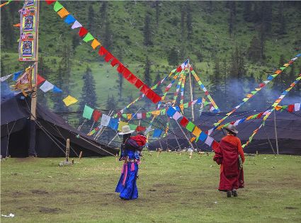 夏天是草原最美的季節(jié),道孚縣玉科草原在這個(gè)季節(jié)里正舉辦久負(fù)盛名的賽馬活動(dòng)。五顏六色的彩帶飄舞在牛毛大帳篷周圍,喜慶氣氛四處洋溢。來自遠(yuǎn)近牧區(qū)的親屬也專程趕來玉科草原訪親會(huì)友,參與賽馬角逐,濃郁的民族盛會(huì)令人耳目一新。