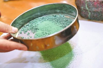 傳統(tǒng)的唐卡是藏族文化中一種獨(dú)具特色的繪畫藝術(shù)形式,需經(jīng)繃布、打磨、定位、起稿、涂色、暈染、拉線條、拉金線等多種程序,天然原料作色保證了畫作幾百年后色澤還依然鮮艷。在著著的畫室里,擺放了百個裝滿各色礦物質(zhì)顏料的調(diào)色小碗,“上色用的是延續(xù)千年的礦物研磨顏料。”為了讓顏料作色更均勻,著著還用自己的辦法搞出了專用的顏料攪拌機(jī)。