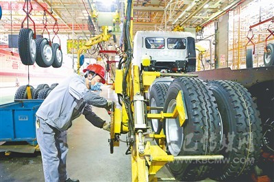 自復(fù)工以來,安徽馬鞍山市經(jīng)開區(qū)內(nèi)的華菱星馬汽車集團(tuán)一手抓疫情防控,一手抓生產(chǎn)和市場(chǎng),各項(xiàng)工作順利推進(jìn),產(chǎn)能完全恢復(fù)到疫情發(fā)生前水平。圖為工人正在安裝輪胎。