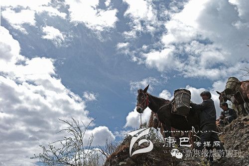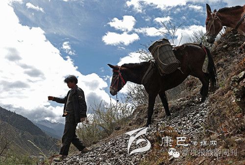 這是318和317國道都不通過的甘孜州白玉縣,從白玉縣城通往建設鄉(xiāng)德沙村的路是一條木制棧橋,2014年5月4日的中午,兩頭騾子在300斤石料的重壓下踩斷了中間的橋板,兩條前腿從踩碎的木板處懸著,騾子發(fā)出粗壯的喘息聲,無法掙扎,不能動彈。棧橋上有路過的藏民,手中旋轉(zhuǎn)著轉(zhuǎn)經(jīng)筒,他口中念念有詞:騾子啊,你還沒有得到解脫。一群來自外地的游客都很驚詫。 騾子運輸隊的王玉海,在過往行人和同行的騾隊鄉(xiāng)親的幫助下,先卸下騾子身上背負的碎石,然后手伸到騾子前腿根處,用力抬起騾子的前身。在查看騾子沒有受傷后,王玉海把這兩只騾子牽到騾隊最后面,然后,引著另外5只負重的騾子,從橋靠左邊的雙層木板橋面上通過,騾子隊受到驚嚇,不愿意上橋,王玉海安撫了一會兒騾子隊后,在同伴的協(xié)作下,前面牽引,后面驅(qū)趕,終于,王玉海的7只騾子過橋,其他8個同伴的50多頭負重的騾子也一一通過。
