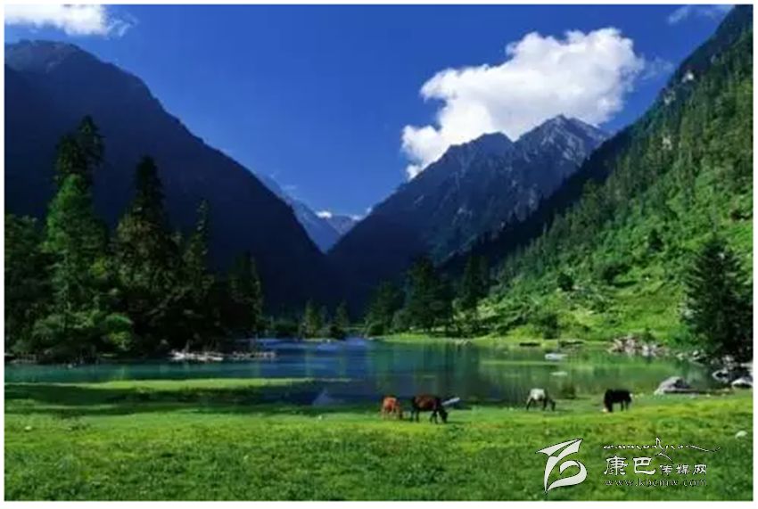 蓮花湖位于康定縣普沙絨鄉(xiāng)苦西絨山谷中。夏季如鏡的水面倒影著森林和天空,寧?kù)o而致遠(yuǎn),湖泊周圍如翡翠般碧綠的草坪,成群的牛、羊如珍珠般撒落在草原上。秋季,滿山色彩絢麗,多姿多彩的群山像淋透了顏料,紅色、黃色、青色、綠色,映襯藍(lán)藍(lán)的天空。
