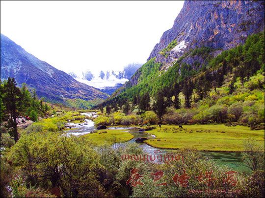 洛絨牛場也是通往五色海、牛奶海的必經(jīng)之地。(單邊步行約3.5小時左右)另外小轉神山仙乃日也要經(jīng)過這里(由沖古寺出發(fā),經(jīng)洛絨牛場繞仙乃日轉一圈,全程20公里)。