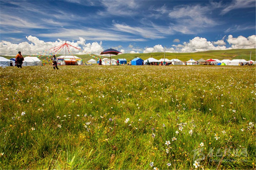 拉日馬大草原,藏語(yǔ)譯為神仙居住的地方,寬闊的草原、豐茂的水草、茫茫的-、蜿蜒清澈的拉曲河,構(gòu)成的一幅天然畫(huà)卷。加之當(dāng)?shù)啬撩窦儤愕拿耧L(fēng)、散落在草原上星星點(diǎn)點(diǎn)的牛群、帳篷,給人一種回歸之感。倘若是在夏季,草原上成為花的海洋,四處飄溢著花的芬芳和奶香,在醉人的季節(jié)里,定會(huì)使人留連忘返。