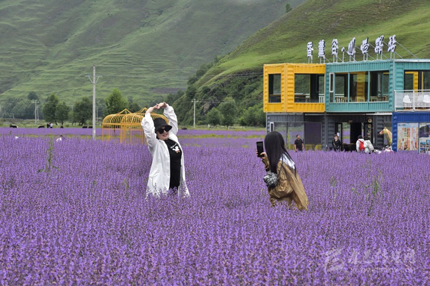 是時(shí),微風(fēng)乍起,黛山環(huán)抱下的花海漾蕩著瀲滟的紫光,裹挾著無(wú)邊的浪漫和淡淡的芳香,向棧道上的游人涌來(lái),彌漫到腳邊、四溢到身旁——踏訪這個(gè)藏在川西高原的“普羅旺斯”詩(shī)境實(shí)地,一幅美不勝收的“夏日高原送爽圖”令人心迷神醉。