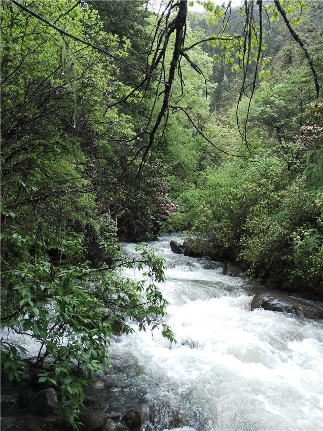 金湯河地區(qū)包括拉角溝在內(nèi),屬“森林植被”地區(qū),動植物資源十分豐富。海拔由低到高,沿途可見牛皮樺、青楊、漆樹、泡花樹、大葉櫟、雅樟、女貞、鐵杉、油松、川白樺、冷杉、云杉等。除此之外,還有木蘭、杜鵑、連香樹、白木以及蟲草、貝母、天麻、大黃等名貴中藏藥材。動物資源,除了“大熊”這個國寶之外,還有金絲猴、白唇鹿、牛羚、黑頸鶴、小熊貓、雪豹、盤羊、毛冠鹿、白馬雞、藏雪雞、獼猴、云豹、血雉等珍稀或國家保護動物。可謂是一塊真正的“寶地”。