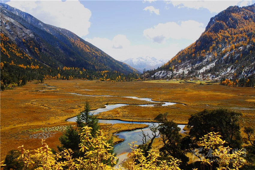 第一場秋雨開始的時候,高山上便開始飄起了雪花,到了九月左右,圣潔的雪山便開始層層包裹雪白的衣衫,為來年的春夏積攢滋養(yǎng)的泉水。秋天沿著山峰從高處漸次向下,一些低矮的灌木也迫不及待的穿上絢爛的秋裝。陣陣秋風(fēng)吹過,色彩自然越加濃烈。