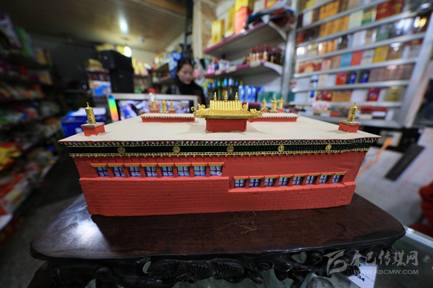 偌大的德格印經(jīng)院你能不能“請(qǐng)回家”?不能。那現(xiàn)在,你能把徳格印經(jīng)院“請(qǐng)回家”了。2016年,德格手工藝人寸潤(rùn)炳按照德格印經(jīng)院原型,以1:5000的比例設(shè)計(jì)和制作完成了“德格印經(jīng)院立體擺件”《三和·吉祥巴宮》。