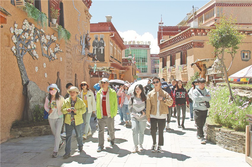 理塘縣“勒通古鎮(zhèn)·千戶藏寨”景區(qū)游人如織