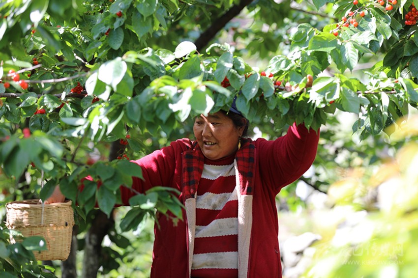 “樹上的恩桃兒隨便摘、敞開吃!”板板橋農(nóng)家樂老板鄧安美熱絡(luò)地招呼著客人,忙碌中掩飾不住內(nèi)心的喜悅。“這周末14個(gè)房間全部訂滿,午餐、晚餐也已經(jīng)訂了40桌?!睋?jù)了解,今年紅櫻桃節(jié)活動開始前一周,瀘定縣內(nèi)及紅櫻桃節(jié)舉辦地杵坭村周邊的酒店、民宿就已供不應(yīng)求。漫山遍野間,一串串已經(jīng)成熟的櫻桃在燦爛陽光的照耀下,紅艷欲滴;農(nóng)家樂里,樹下擠滿了三五成群的游客,有的邊摘邊吃,有的喝茶聊天,好不悠然自怡。
