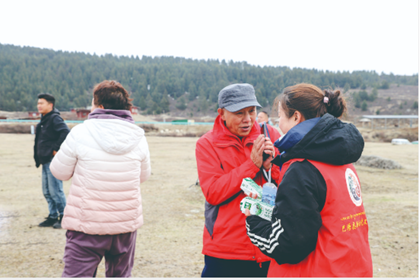 為切實(shí)做好旅游服務(wù)工作,巴塘縣在全縣各鄉(xiāng)鎮(zhèn)、景區(qū)景點(diǎn)、觀景平臺設(shè)置志愿服務(wù)站,提供旅游咨詢、游客接待、景點(diǎn)推介、指路引路、急救科普以及預(yù)防高反小知識等服務(wù)。圖為在措普溝景區(qū)內(nèi),志愿者為游客提供服務(wù)保障,用“暖心”讓游客安心、放心。 馮向智 攝