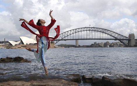中國女孩悉尼歌劇院前跳芭蕾
