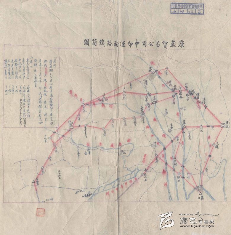 在很多人的印象中,所說的“茶馬古道”僅是從四川的雅安到康定,然后從康定到青海牧區(qū)和西藏拉薩。事實(shí)上,這條古道直達(dá)印度。在塵封的檔案中發(fā)現(xiàn)一份“康藏貿(mào)易公司中印運(yùn)輸路線簡(jiǎn)圖”,清晰地標(biāo)明從康定往西走直到印度加爾各達(dá)等地的商品運(yùn)輸線路。