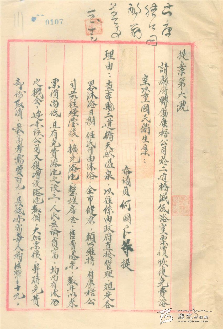 另一份舊檔案也有趣,這是一份由一名參議員提出的提案,內(nèi)容是由于生活在康定的人、包括公務(wù)人員在內(nèi),因?yàn)槭杖肷伲罾щy。請(qǐng)求康定縣政府出面給經(jīng)營二道橋的“康裕公司”提出二道橋洗浴不收費(fèi),經(jīng)營方的虧空可以在其它經(jīng)營,如餐飲獲得的利潤中解決。參議會(huì)上還通過了這個(gè)提案,說是“原案所擬辦法尚屬可行,擬送請(qǐng)縣府轉(zhuǎn)飭康裕公司照辦”。這份提案再無下文,康裕公司是不是照辦了,不得而知,就是參議會(huì)是不是轉(zhuǎn)給了康定縣政府也不得而知。以今天的眼光看,這份提案有滑稽、有趣的一面,卻也有關(guān)注民生而十分無奈的一面。