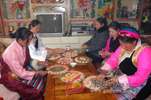巴塘人一年當(dāng)中有很多重要的節(jié)日,而最重要的莫過(guò)于過(guò)春節(jié)。隨著農(nóng)歷新年的來(lái)臨,巴塘人過(guò)春節(jié)的氛圍也越來(lái)越濃烈了。掃塵、貼春聯(lián)、殺年豬、罐血腸、樹(shù)經(jīng)幡、獻(xiàn)“切瑪” 、曬牛肉干、做長(zhǎng)面、炸“花茹” 、 釀青稞酒等等,人們臉上綻放出春天的笑顏,喜逐顏開(kāi)迎候新春佳節(jié)的到來(lái)。而在眾多的風(fēng)味飲食中,炸“花茹” 、 吃長(zhǎng)面(當(dāng)?shù)厝朔Q之為“金絲面”)是巴塘人春節(jié)時(shí)家筵中必不可缺的美食佳肴。