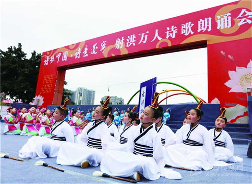 據(jù)了解,本次活動是《詩刊》2016年度陳子昂詩歌獎系列活動之一,參與人數(shù)之多、規(guī)模之大,在射洪縣尚屬首次?,F(xiàn)場由射洪中小學(xué)生和企事業(yè)單位組成的方陣和演出隊伍,以載歌載舞或配樂詩朗誦等形式登臺表演, 內(nèi)容以經(jīng)典詩詞為主,也有圍繞當(dāng)前中心工作而創(chuàng)作的新詩。這是文化的傳承,更是血脈的延續(xù)。參加詩歌朗誦會的最小的4歲,或許他們不懂文字背后的美,并不理解字里行間透露出的人生況味,但他們在射洪這樣的文學(xué)滋 養(yǎng)中出生、成長。