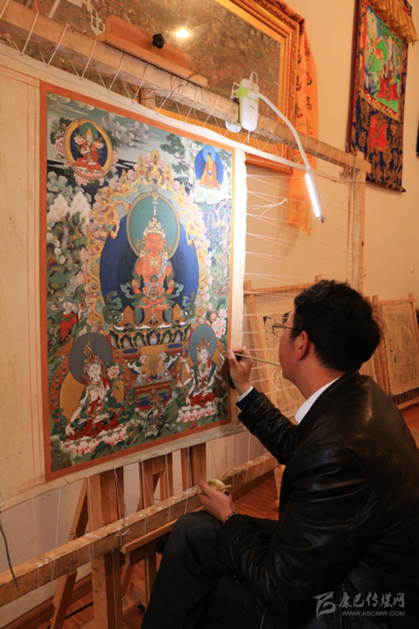 在十多年的繪畫生涯中,著著接觸了很多畫師,經(jīng)常與他們一起交流,并在不斷的摸索與總結中讓自己的技藝得到不斷提升,為了潛心作畫和讓更多愛好唐卡畫的青年學習唐卡畫,家在農(nóng)村的著著在城里租房開設了現(xiàn)在的畫室,并招收了徒弟。目前,著著歷時四個月以宗教為題材潛心創(chuàng)作的唐卡畫《釋迦牟尼》,已投送到第二十屆杭州西湖國際博覽會中國民間藝術產(chǎn)業(yè)示范展會上,他想通過參加展會的方式讓更多人了解被列為非物資文化遺產(chǎn)的藏族唐卡畫和藏民族文化。