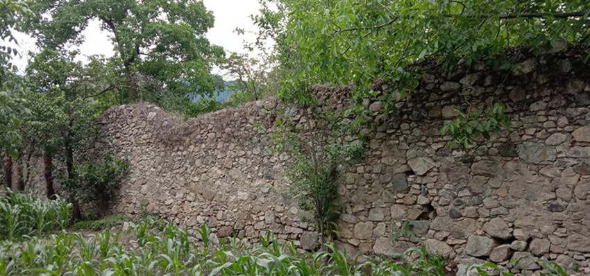 在鄧明前老師的帶領(lǐng)下,記者沿小路往大渡河方向而行,不久即看到一面石頭砌成的圍墻。鄧明前老師說,那即是茶倉(cāng)遺址了。