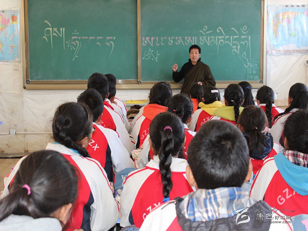 巴松鄧珠在上藏文書法課。