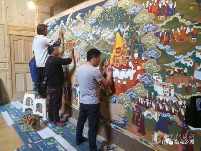 鄉(xiāng)城民間相傳,當(dāng)時(shí)西藏來(lái)的手工藝匠人雖都是格魯派信奉者,卻也對(duì)蒙古人的暴行多有不滿。在軍隊(duì)返回西藏時(shí),未與蒙古軍隊(duì)一并返藏,而是選擇留在了鄉(xiāng)城。他們?cè)卩l(xiāng)城收徒授業(yè),也將流行于拉薩的勉唐畫(huà)派帶到了鄉(xiāng)城。