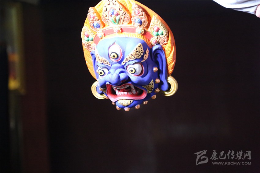 待面具自然風干后,用礦物質(zhì)、植物的根等制作的自然顏料進行著色,自然顏料有不變色、耐光的特性,通過一淡、二濃、三淡的上色過程使面具涂色均勻,待顏料曬干后對面具進行磨光,去除雜物,再對面具進行裝藏念經(jīng),如此,一個藥泥面具制作完成。做好的藥泥面具有濃郁的藥材香氣,并有著驅(qū)蚊、殺菌、抗病毒、清潔空氣、解除疲勞等功效。