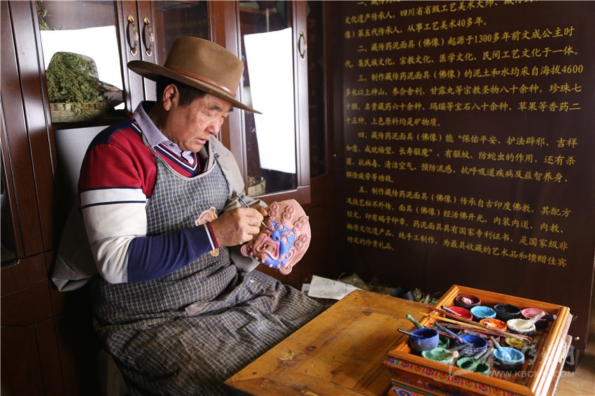 作為一名旅行者,四龍降澤老人熱情地接待了我,他是新龍縣人,因為妻子是道孚人,退休后隨妻子在道孚生活。從14歲開始學習制作藥泥面具,迄今為止已經(jīng)有了50年的制作經(jīng)歷,手藝愈發(fā)成熟,其中一句“藥配好了是藥,配不好就是毒”讓人印象深刻,因為到來的時間恰巧,有幸見到大師制作藥泥面具的過程,算是這場沖動旅行的意外驚喜。