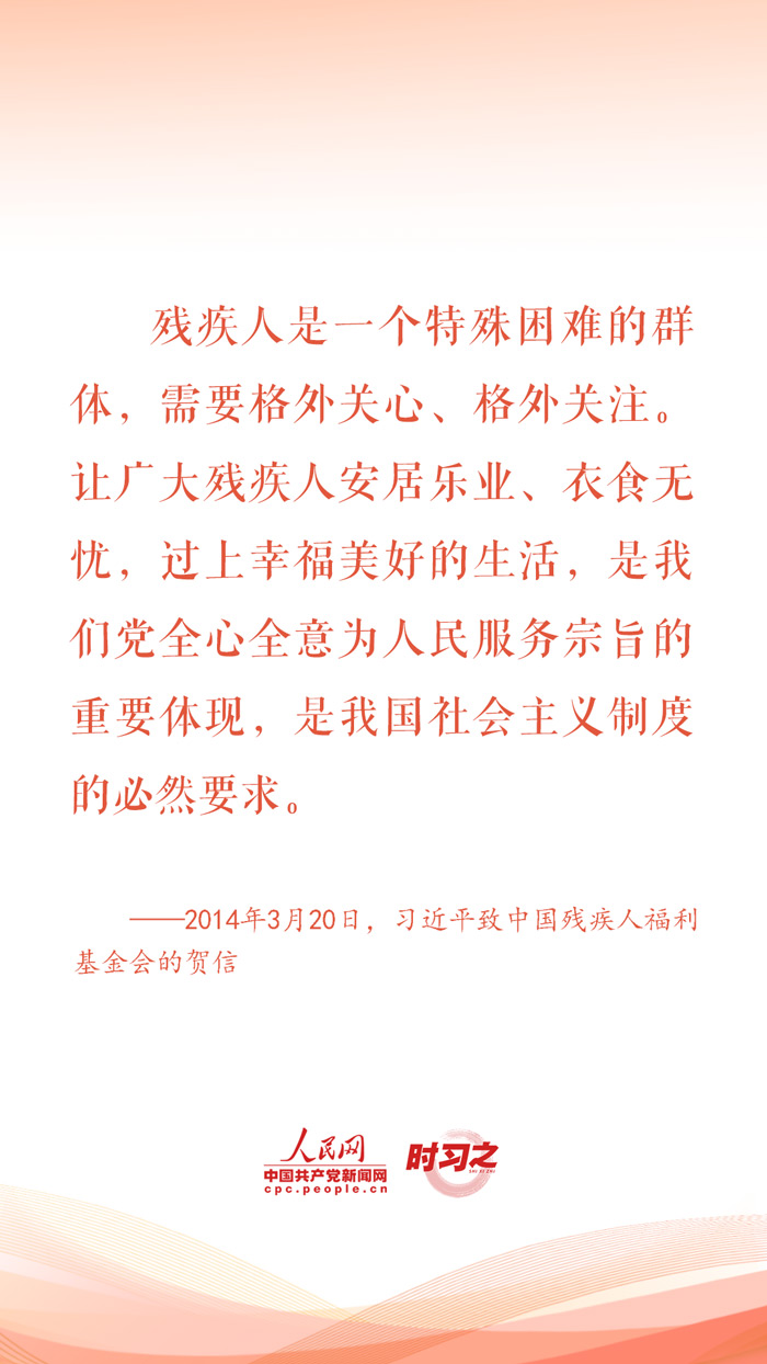 2024年5月19日是第三十四次全國助殘日。對(duì)于殘疾人這個(gè)特殊群體,習(xí)近平總書記始終格外關(guān)心、格外關(guān)注,在不同場合頻頻為他們加油鼓勁,勉勵(lì)他們活出精彩的人生。